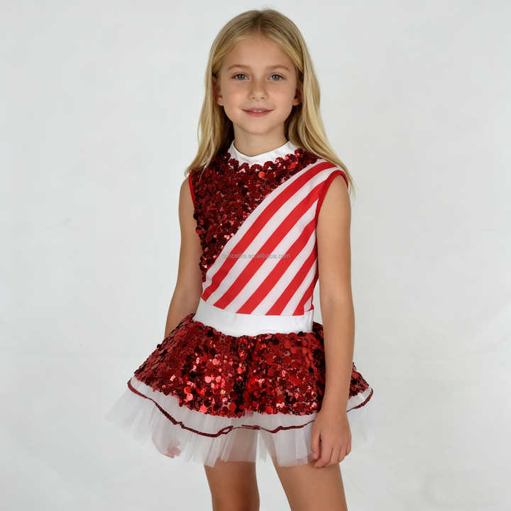 Body da Danza in Spandex per Adulti e Bambini, Costume da Ballo Latino Rosso con Paillettes, Tutù per Spettacoli e Performance di Jazz
