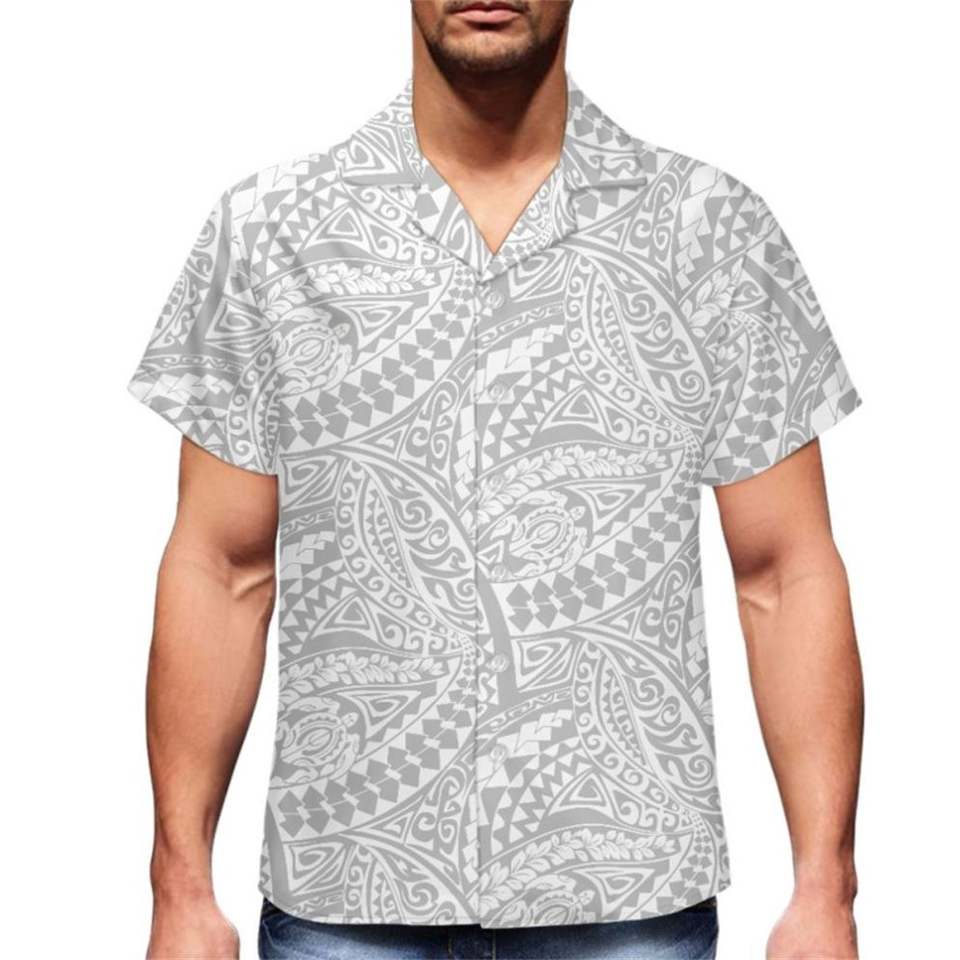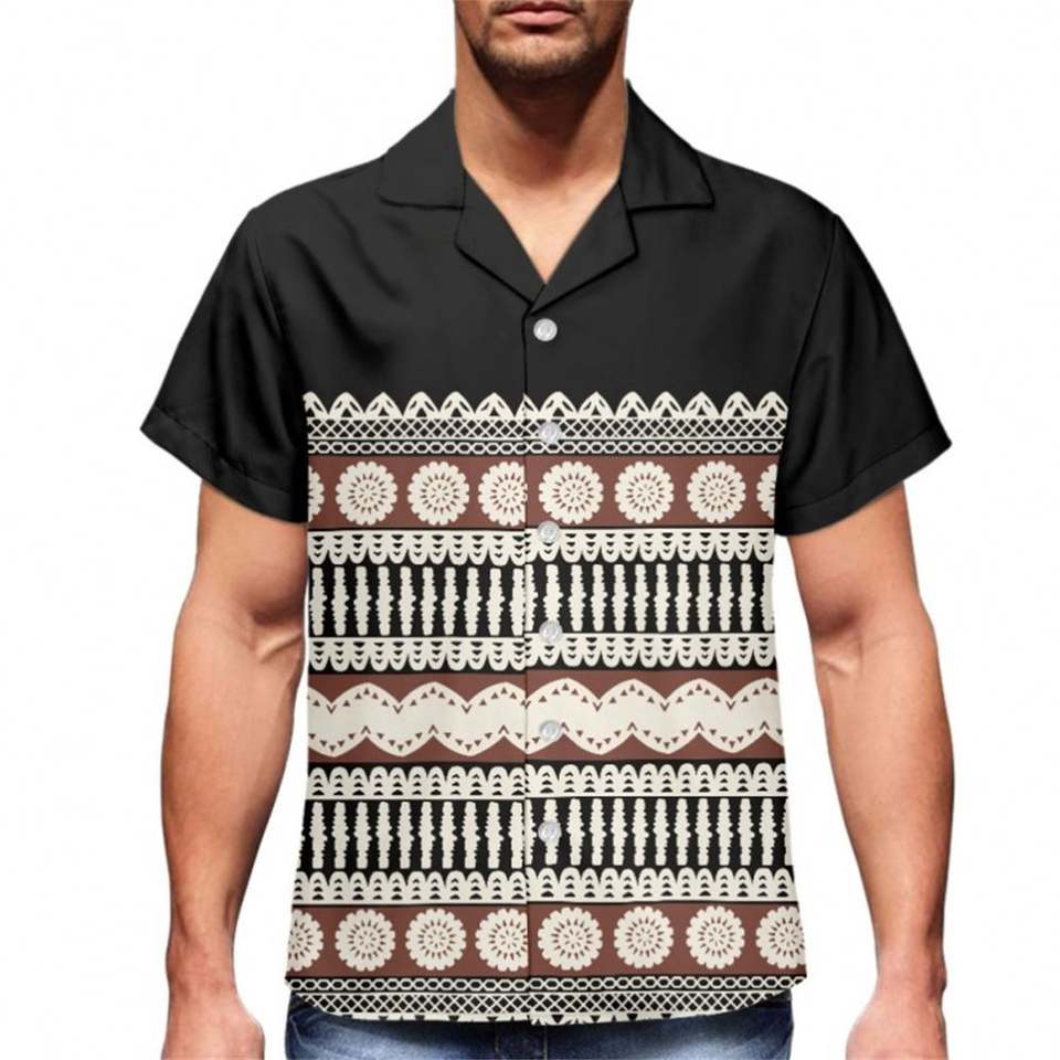 Camicie in Spandex e Poliestere 2024, Stampa Floreale Tribale Polinesiana Marrone e Bianca Fiji Tonga, Camicia da Bowling Personalizzata da Uomo con Maniche e Bottoni