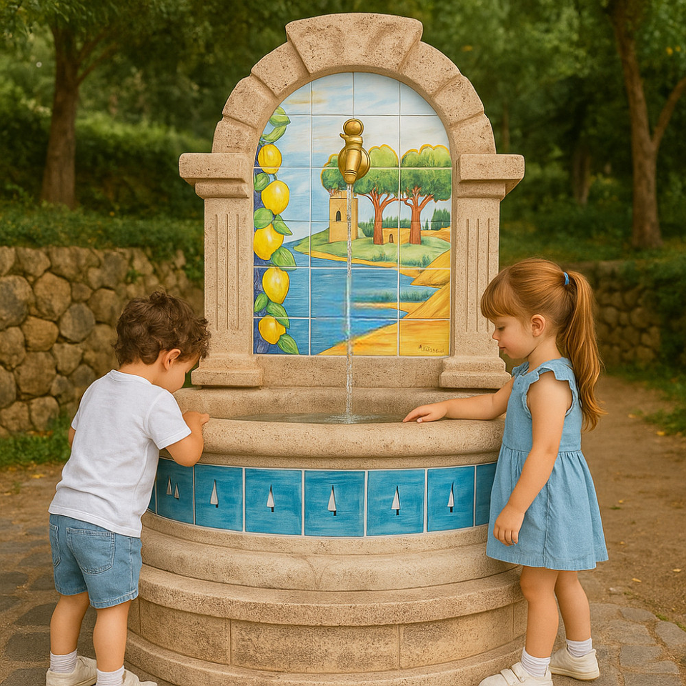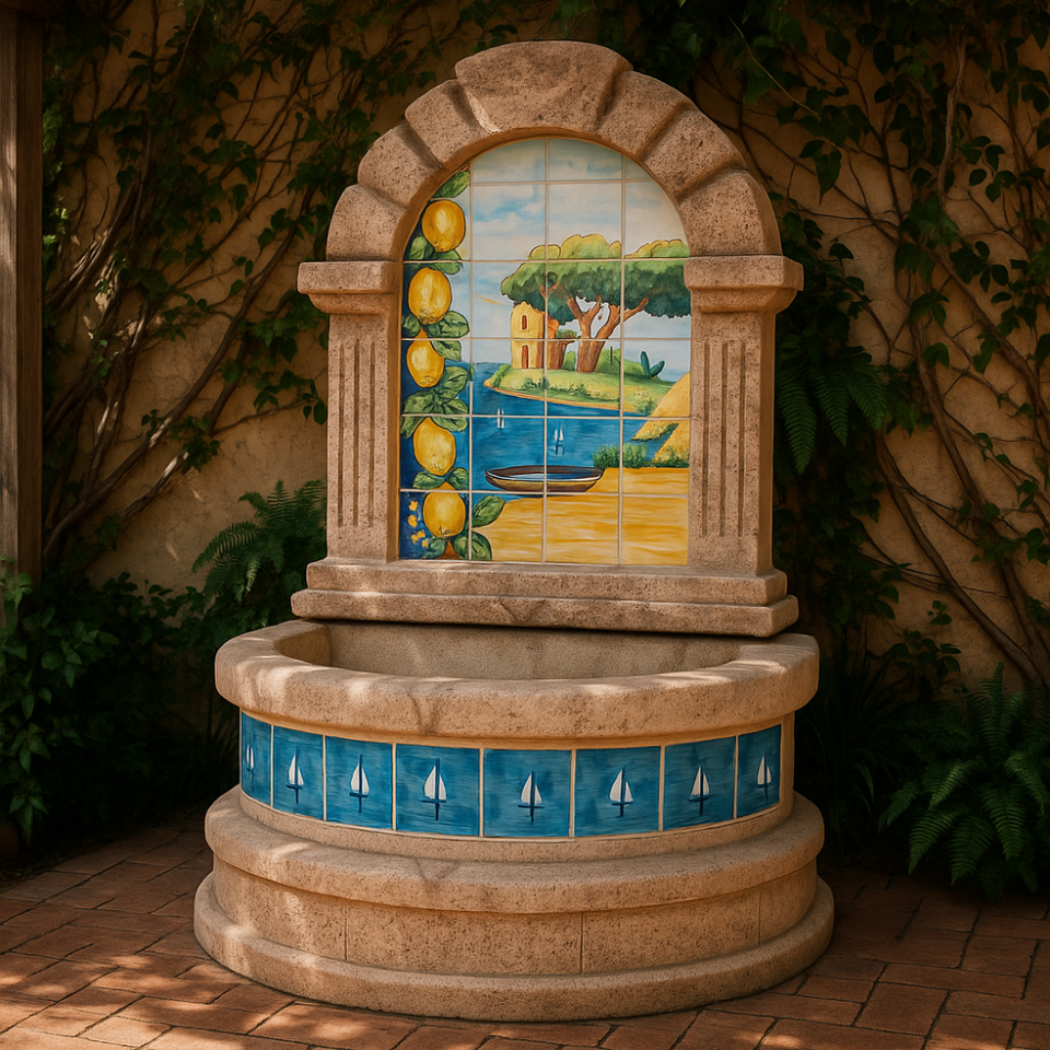 Spanish Vietri Model Majolica Fountain H120XL80XD45 cm Stone Effect Concrete