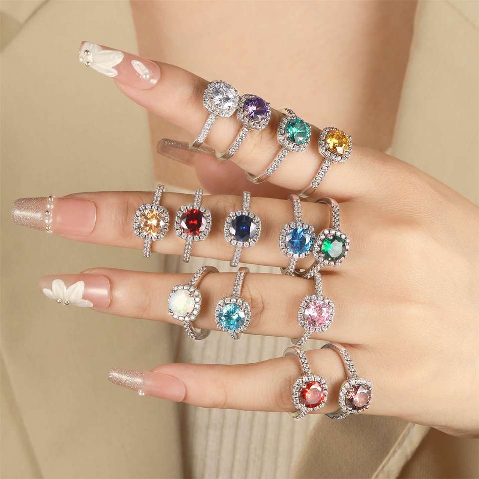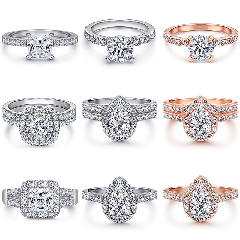 Anelli con Zirconi Cubici Scintillanti, Gioielli in Argento Sterling 925 Placcato Rodio Antiossidante, Anello di Fidanzamento per Donne