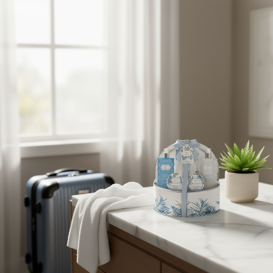 Set da Viaggio Lusso On-the-Go Sparkling Bliss: Eleganza Premium per la Cura della Pelle con Idratante Bagno, Aloe Vera, Vaniglia e Profumo di Tiglio