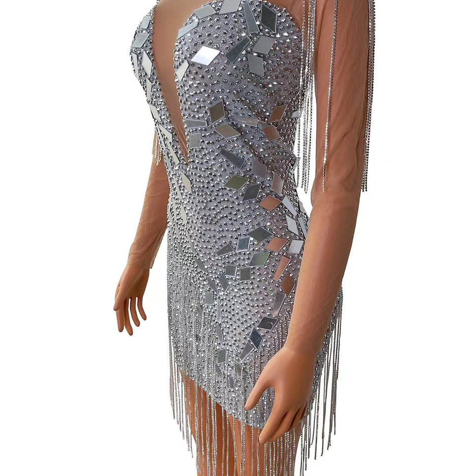Sparkly Crystal Sequin Tassel Floor-Length Ballgown Empire Waistline Polyester XL Size Formal Embroidered Pearls