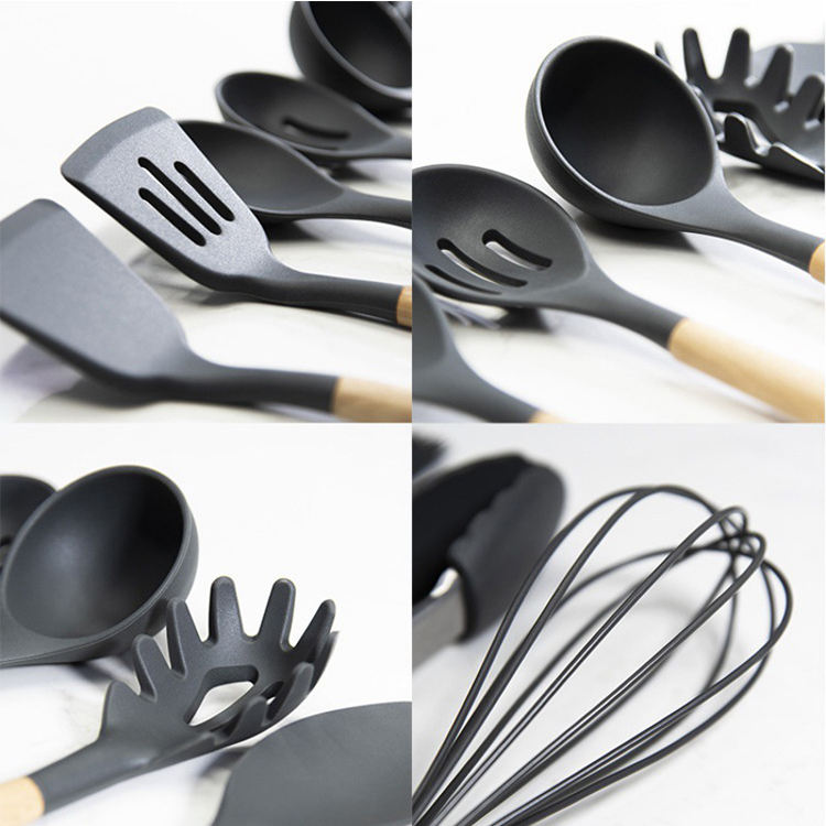Set di Spatole Utensili da Cucina Antiaderenti Resistenti al Calore in Silicone con Manico in Legno Colore Personalizzato Logo Personalizzato