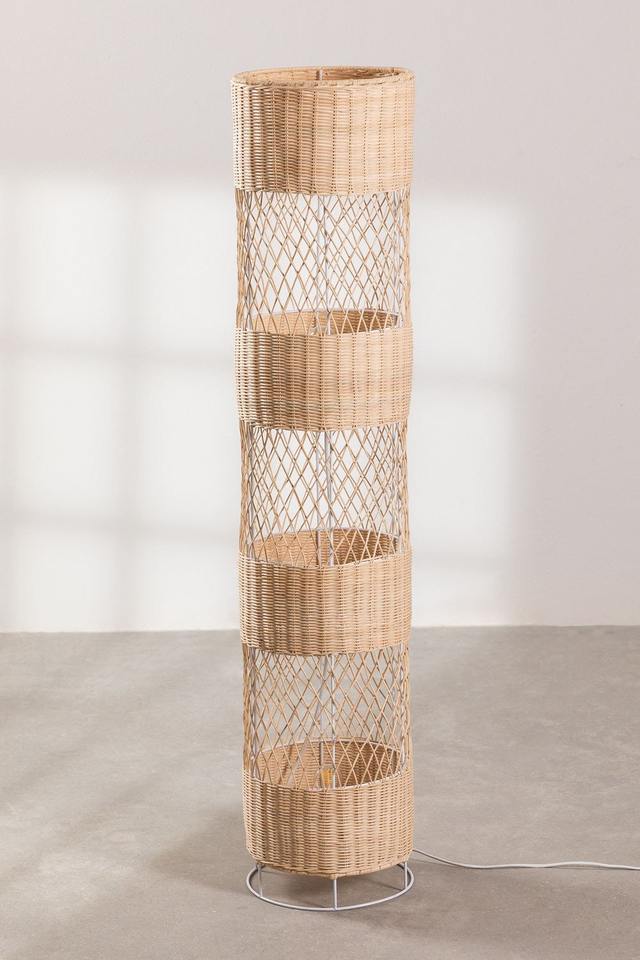 Prezzo speciale! Paralume da pavimento in Rattan con cilindro in tessuto giallo chiaro caldo di Design scandinavo