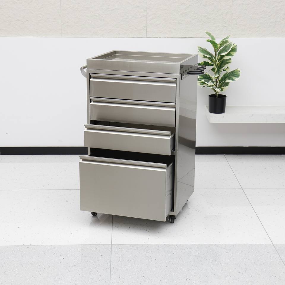 Carrello Porta Attrezzi Specializzato in Acciaio Inox per Saloni di Parrucchieri e Barbieri, Mobiletto Archivio Noto Anche Come Carrello per Bigodini
