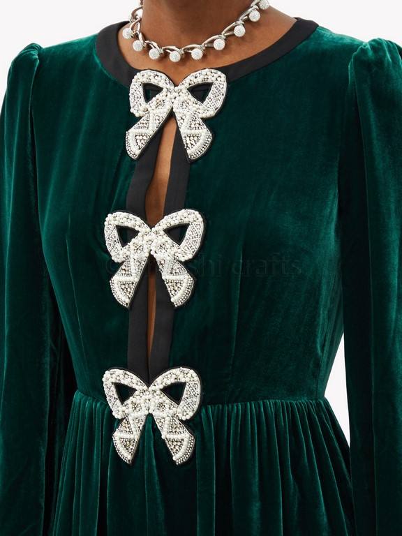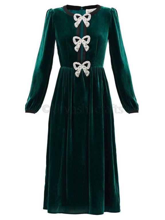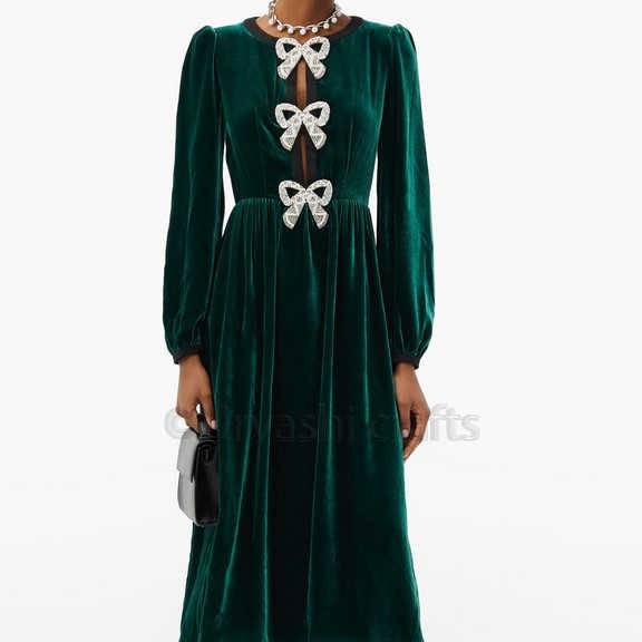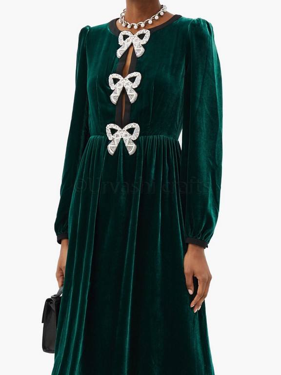 Spectacular Crystal-bow Velvet Midi Dress Women Dress Wholesale Selling Dress