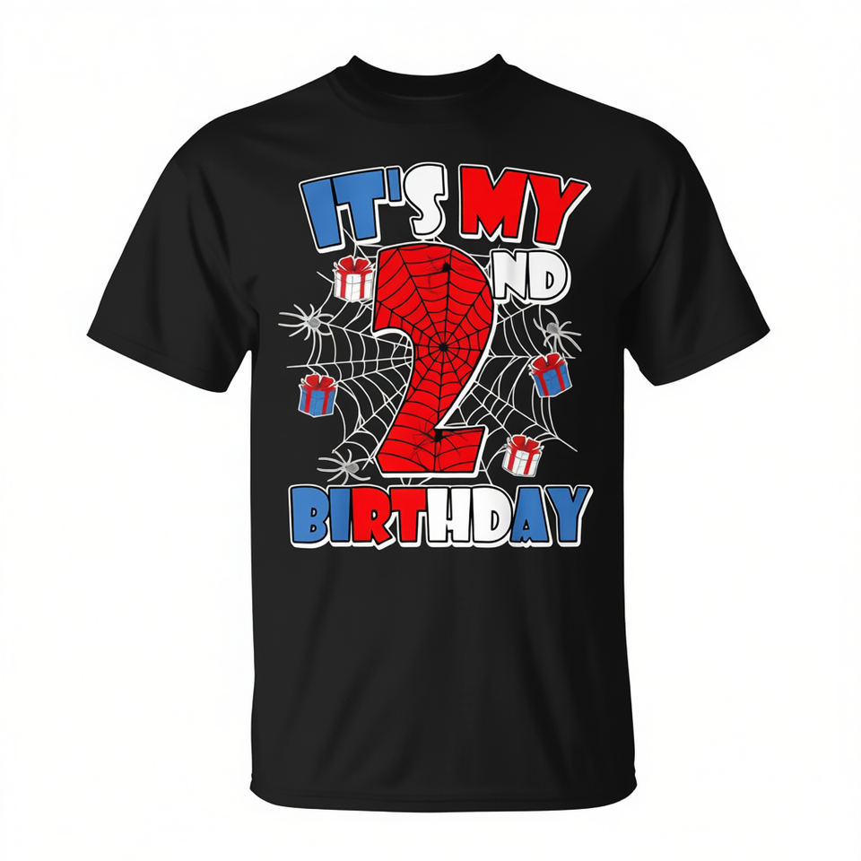 T-shirt a tema ragno per il secondo compleanno, per ragazzi, da indossare alle feste