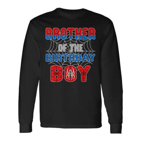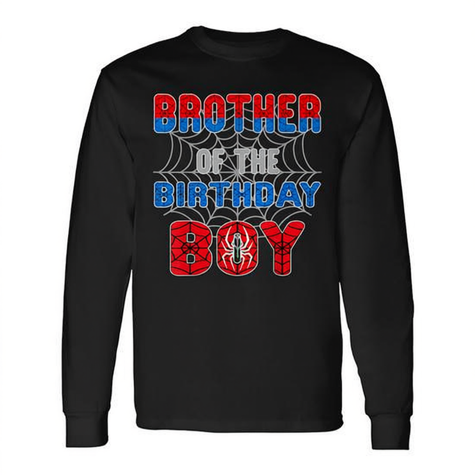 T-shirt a maniche lunghe per compleanno a tema Ragnatela, per fratello del compleandante, girocollo, da bambino, per feste