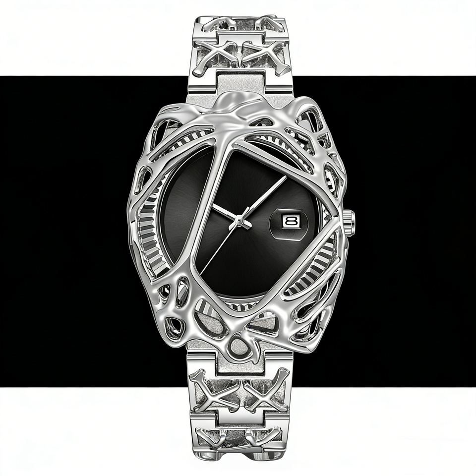Spider Web Men's Luxury Watch Simple Quartz Movement Stainless Steel Waterproof Quartz Watch with Date Display