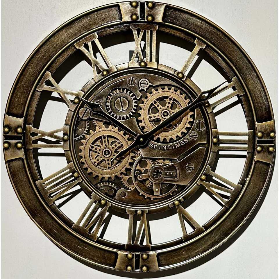Spintimes 55 cm Antique Style Wall Clock Vintage Industrial Metal Gear in Brown Bronze