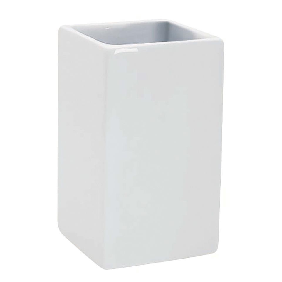 Spirella "Quadro" porcelain toothbrush holder in white, 6.5 x 6.5 x 10.5 cm
