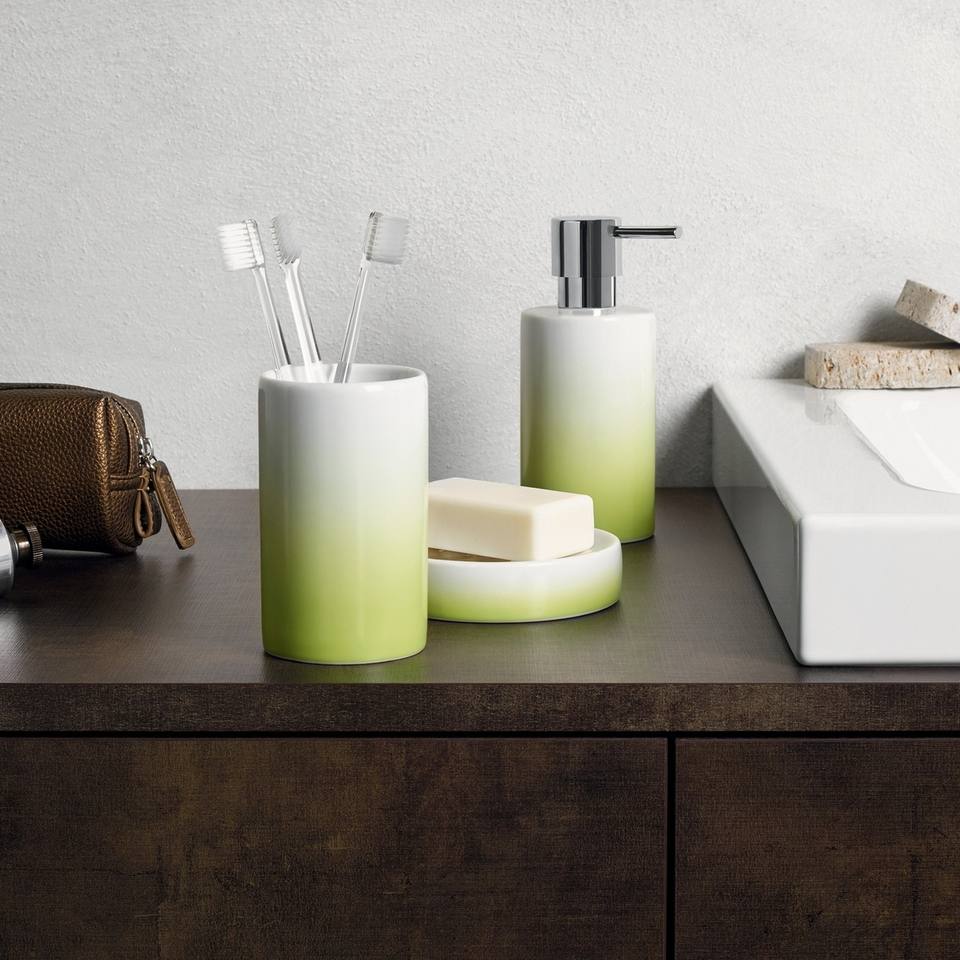 Spirella "Tube" porcelain toothbrush holder in green, 7 x 11.5 cm