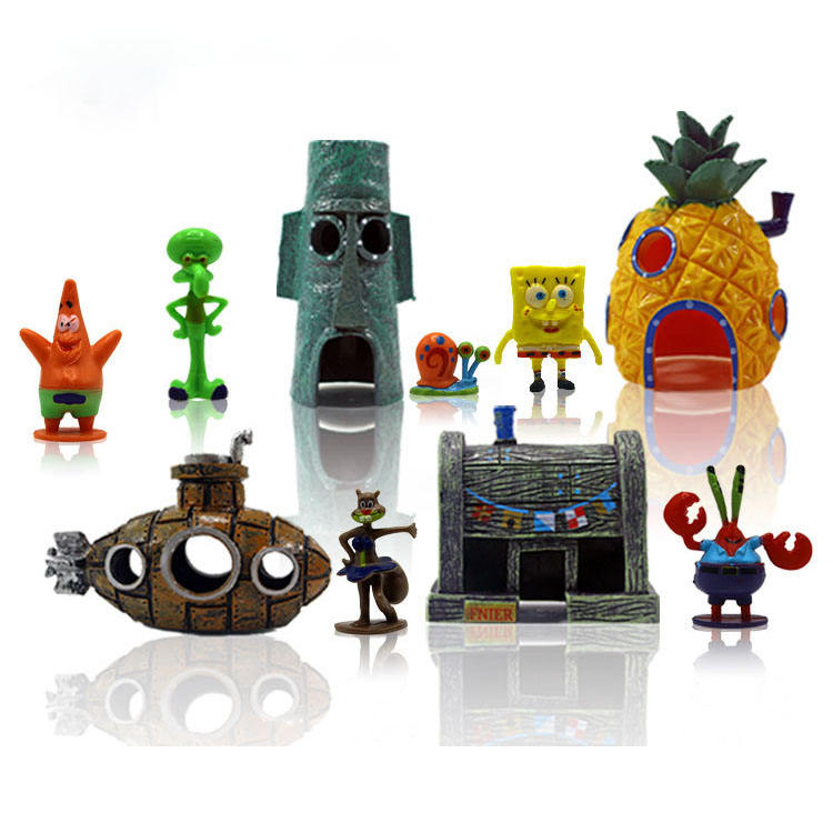 Decorazione per Acquario SpongeBob SquarePants Casa dell'Ananas Set Completo di Ornamenti Piccoli Nascondiglio per Pesciolini Guppy Sottomarino in PVC
