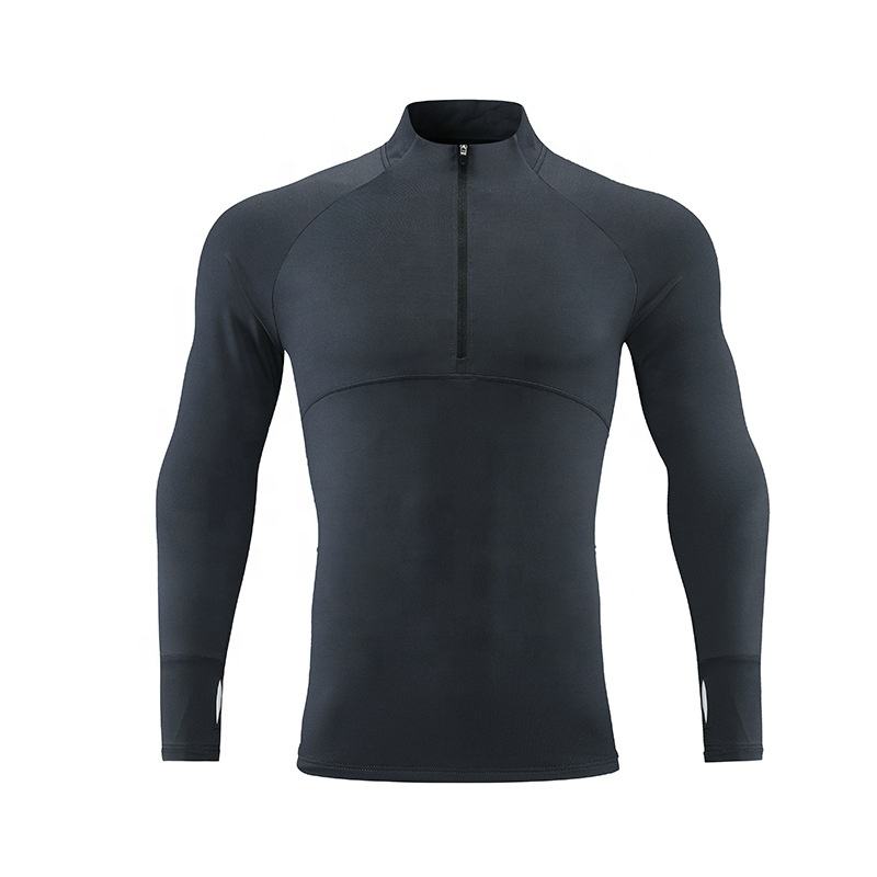 Sport Clothes Men Outdoor Long Sleeve T Shirt Mock Collar Men's Gym T-Shirts Half Zip Sweatshirt Custom
