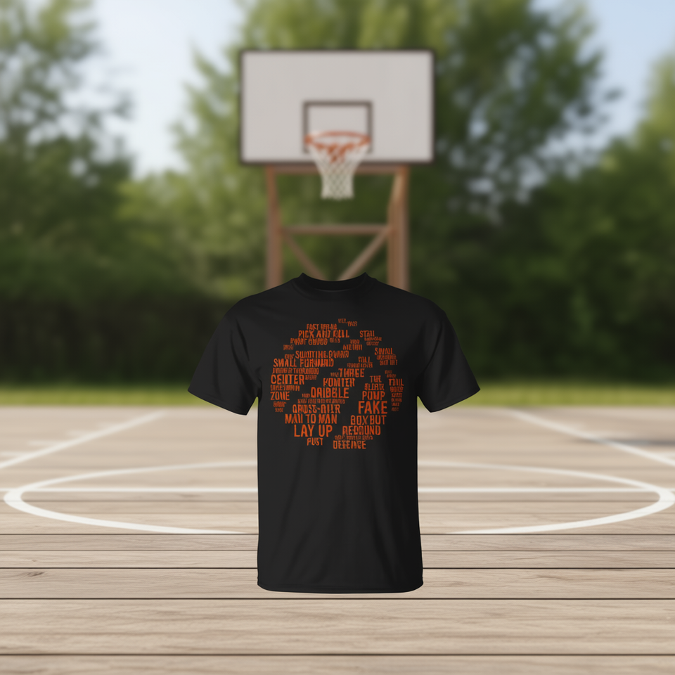 T-Shirt per Appassionati di Basket con Grafica Artistica Unica, Abbigliamento Promozionale con Design a Tema Basket