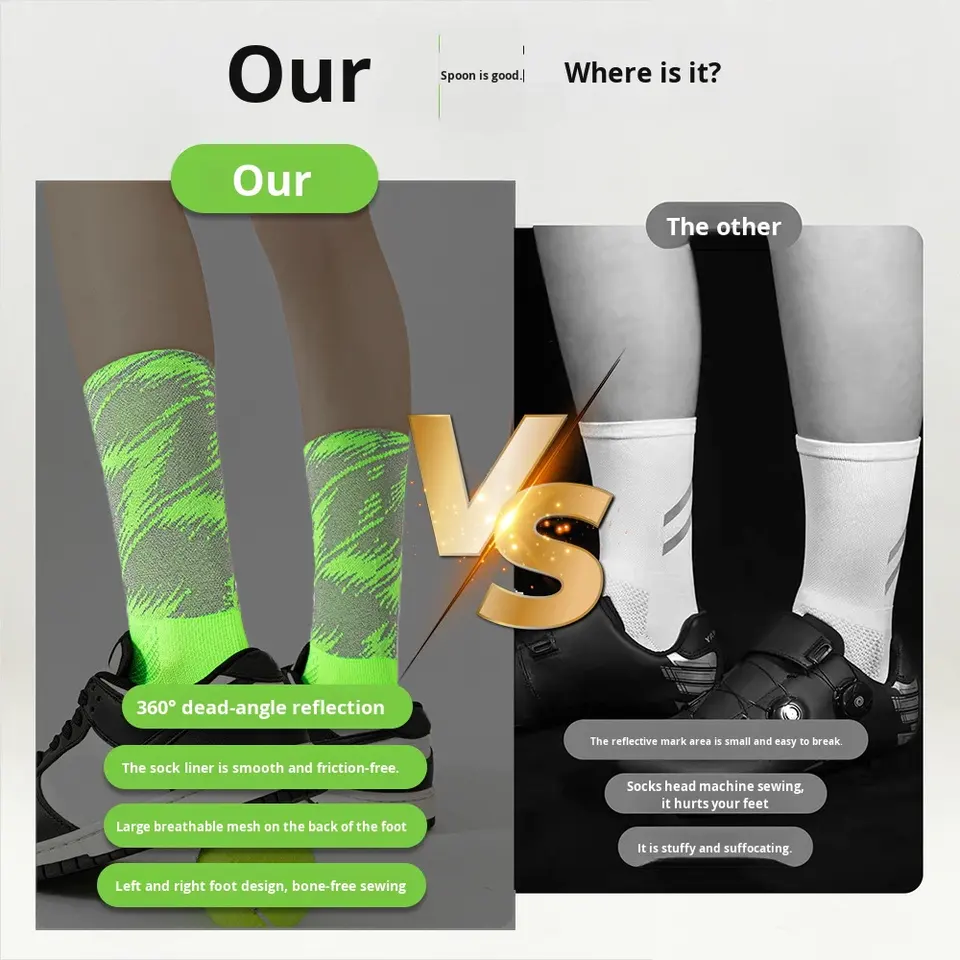 Calzini Riflettenti a Metà Polpaccio in Nylon Lavorato a Maglia per Ciclismo e Corsa, Ideali per l'Estate e l'Uso Notturno