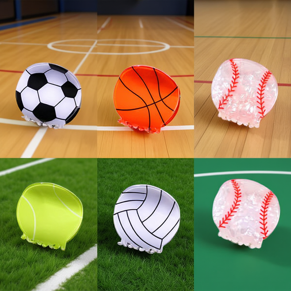 Fermagli per capelli Angelina Sports da 5,2 cm, design calcio, basket, tennis, pallavolo, baseball, per donne e ragazze, uso casual
