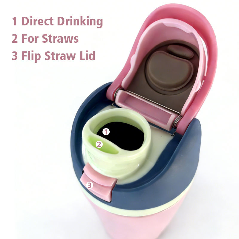 Immagazzinato, Large capacity, Portatile, BPA-Free, Lavabile, Antiscivolo, A prova di perdite, Isolamento termico, Isolamento sottovuoto a doppia parete, Flip straw, A prova di fuoriuscita, Bocca largaCaratteristica