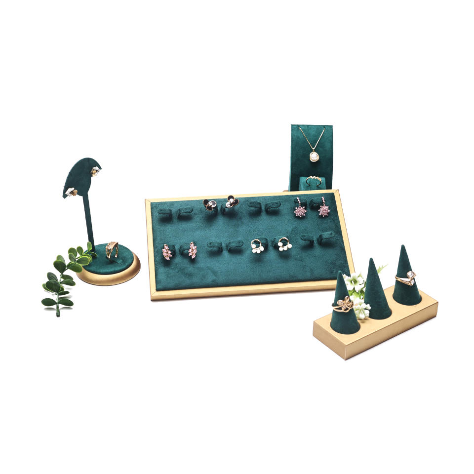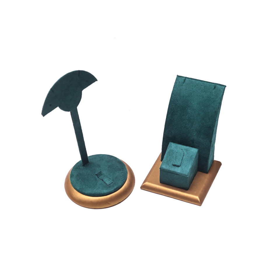 Spot corona di moda verde cornice di gioielli in pelle spazzolata collana bracciale anello in microfibra espositore gioielli