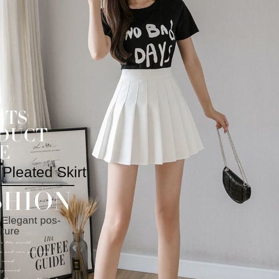Spot High Waist Pleated Skirt Women's Autumn Vintage Style Korean Solid Color Anti-Wrinkle A-Line Wholesale