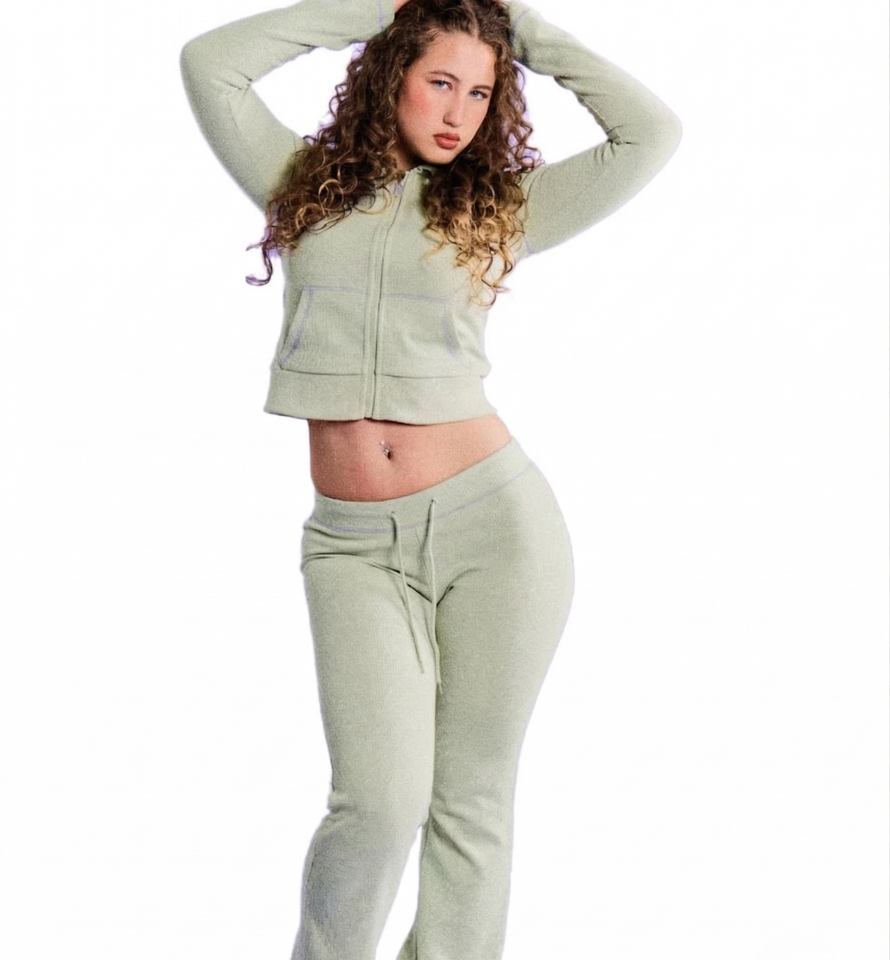 Nuova Collezione Primavera/Autunno 2026: Completo Casual da Donna con Cardigan in Maglia, Zip, Maniche Lunghe e Cappuccio, Abbinato a Pantaloni