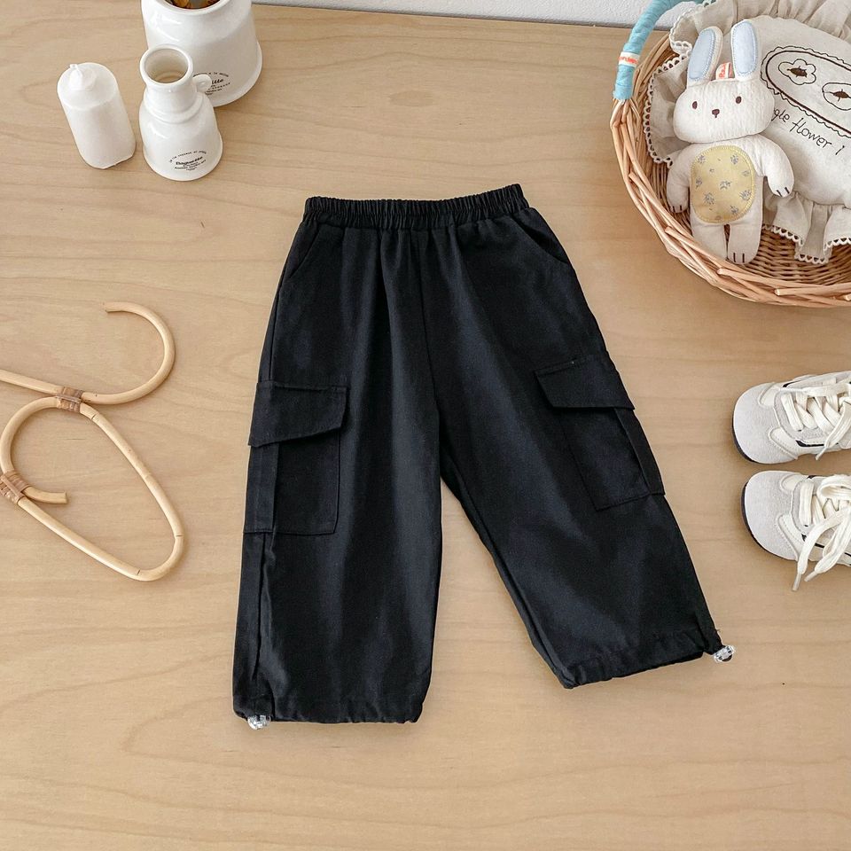 Pantaloni Cargo in Cotone per Bambini Primavera Autunno, Tinta Unita, Vita Elastica, Caviglie Arricciate