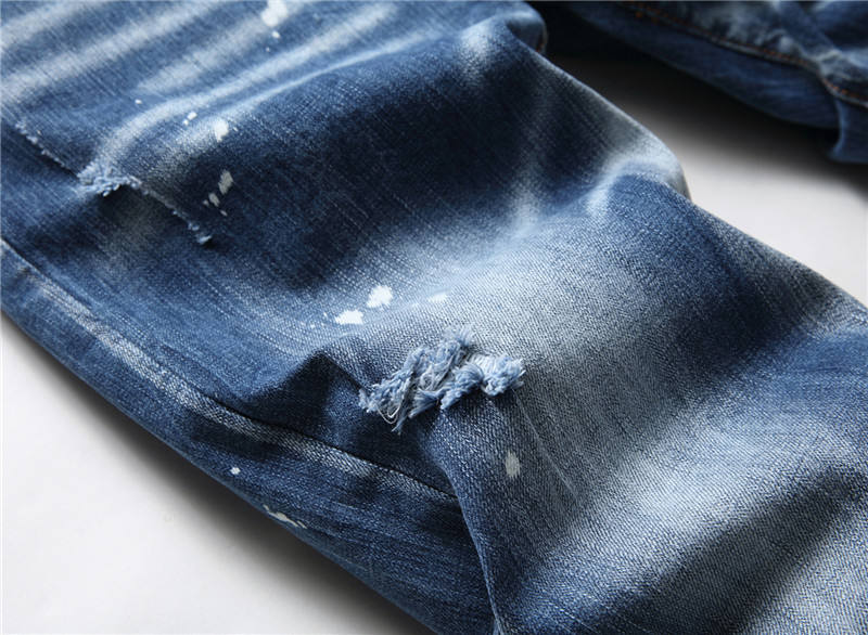 Jeans da Uomo Firmati Stretti Elasticizzati a Cono con Stampa Lettere e Strappi Primavera Autunno in Denim