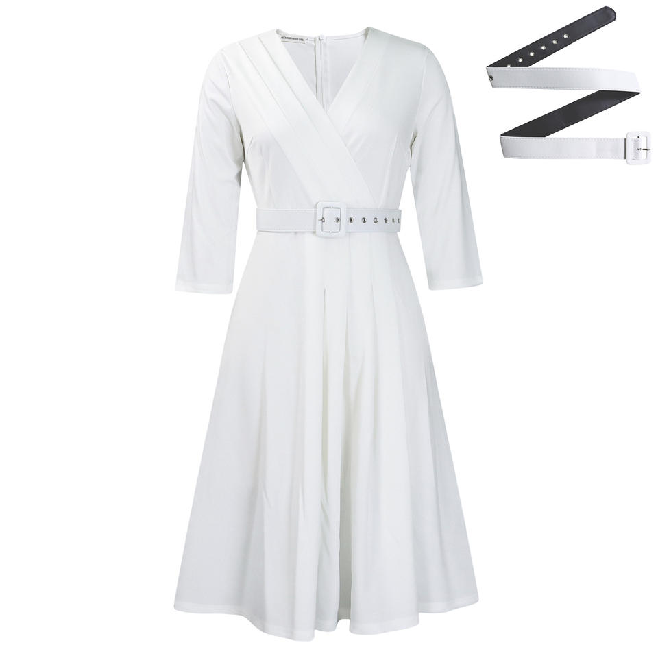 Ultimo Design Primavera-Autunno: Abito Lungo Elegante da Ufficio per Donna, Tinta Unita, Mezza Manica, con Cintura, Stile Africano