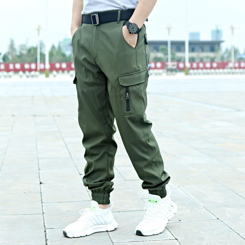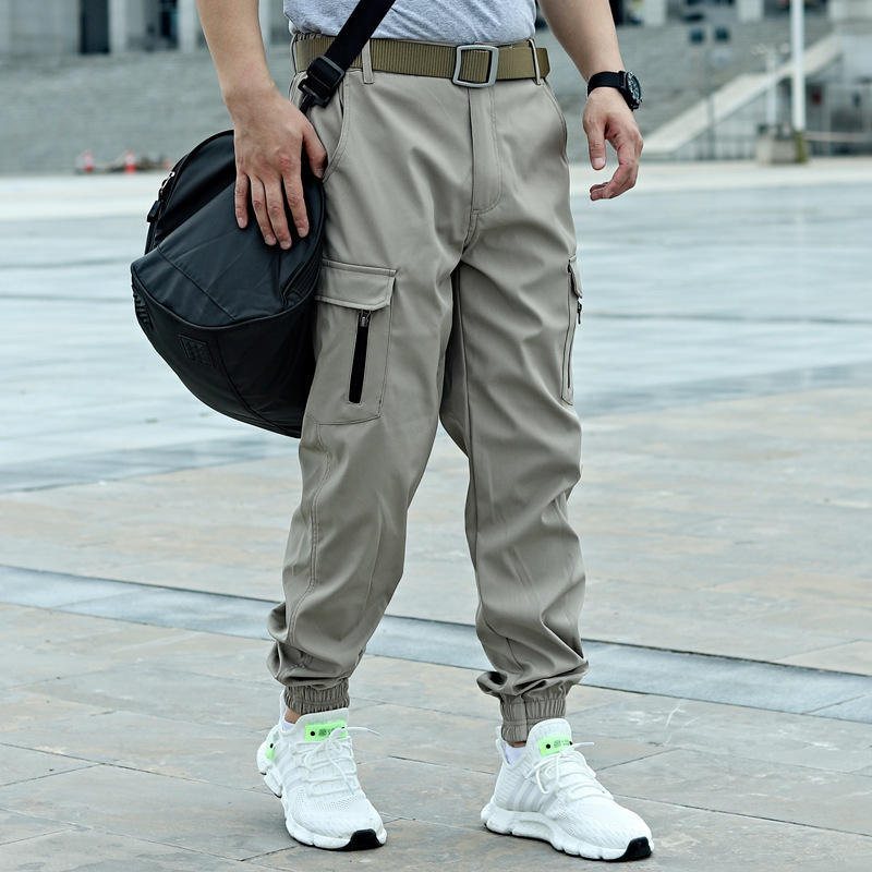 Pantaloni Tattici da Uomo per Primavera e Autunno, Slim-fit Casual con Fronte Piatto, Motivo Mimetico a Gru, Pantaloni Sportivi con Caviglia Elasticizzata