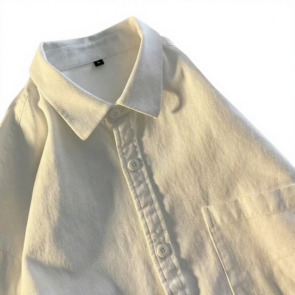 Spring/Autumn Pure Cotton Japanese-Style Beaded Cityboy Base Men's Long-Sleeve American-Style Casual Layering Inner Shirt