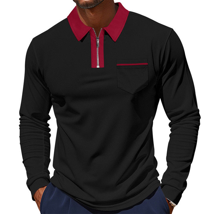 Polo Classica Primaverile Casual con Zip, Asciugatura Rapida, Traspirante, Manica Lunga, Alta Qualità in Cotone per Golf da Uomo