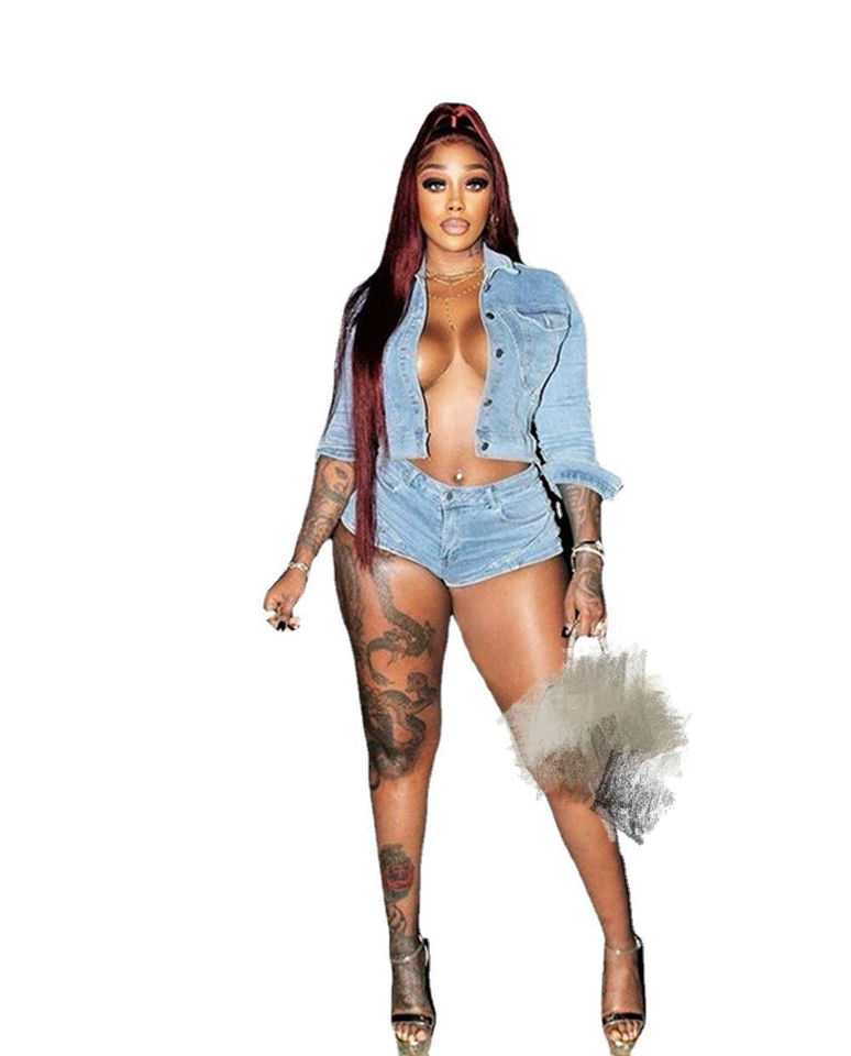 Giacca e pantaloncini in jeans primavera Set due pezzi di jeans per donna Streetwear donna Set Denim