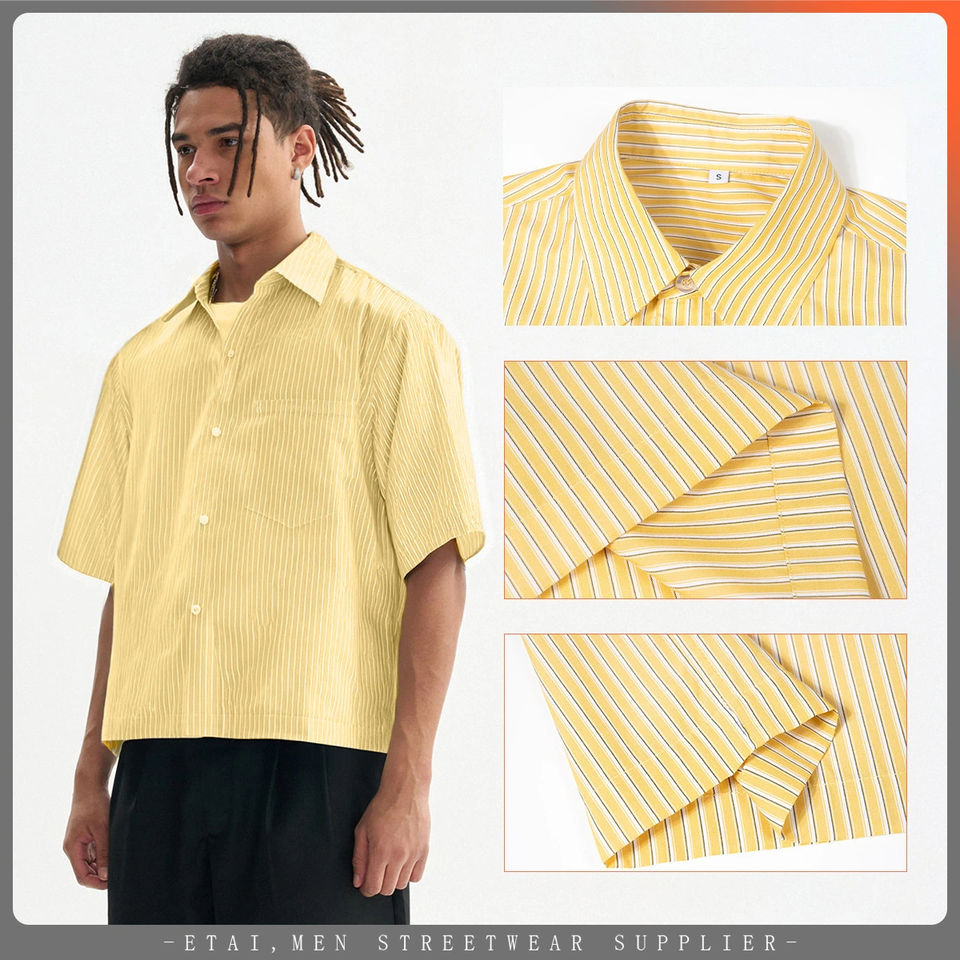 Abito primaverile da uomo camicia formale a righe con colletto con risvolto da lavoro Top squadrato a manica corta con bottone per uomo di alta qualità