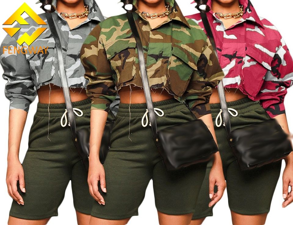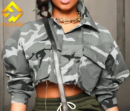 Primavera autunno moda alta qualità a maniche lunghe corte giacca a fatica mimetica donna
