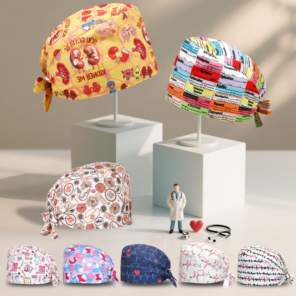 Cappello da Lavoro con Motivo a Cuori Primaverili per Dottori e Infermieri, Berretto Medico Unisex Regolabile per Dentisti e Cliniche Veterinarie