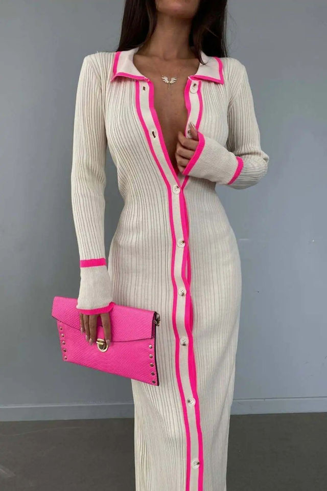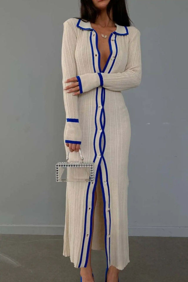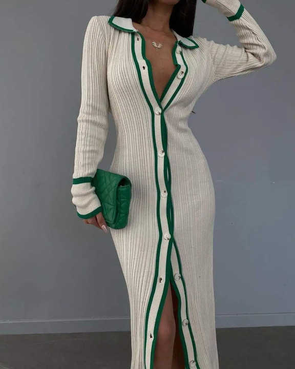Cardigan a Coste a Maniche Lunghe Primaverile, Abito Maglione Lavorato a Maglia per Donna