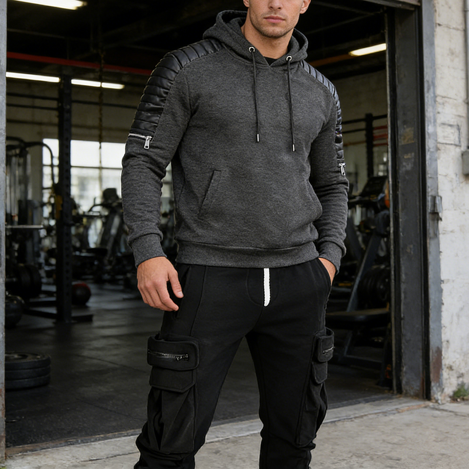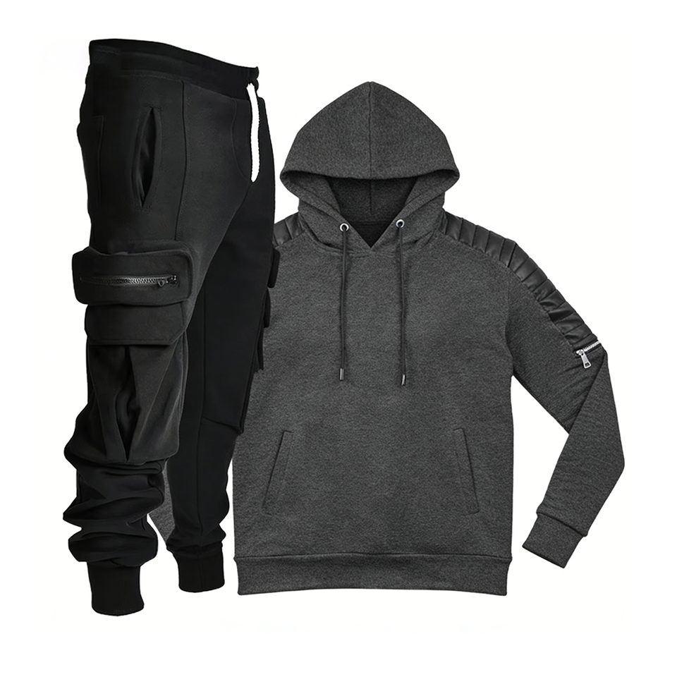 Completo da Uomo Streetwear Primaverile: Felpa con Cappuccio e Pantaloni Cargo 100% Cotone, Vestibilità Ampia, Stile Casual Hip Hop