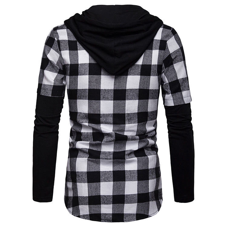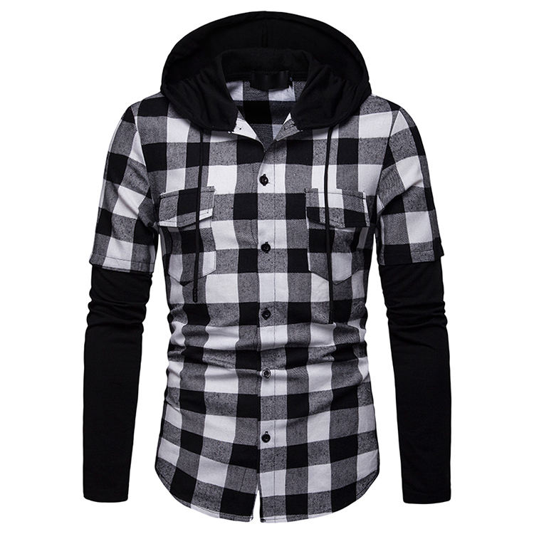 Camicia a quadri Slim Fit Casual da uomo primavera camicia a quadri Slim Fit a maniche lunghe con cappuccio a doppia tasca con cappuccio scozzese