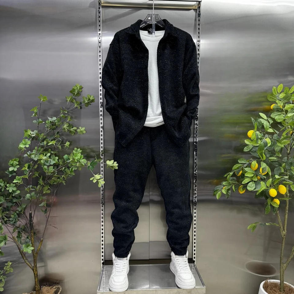 Primavera nuova camicia sportiva da uomo alla moda Top largo con pantaloni in cotone 100% traspirante completi di camicie e pantaloni sportivi