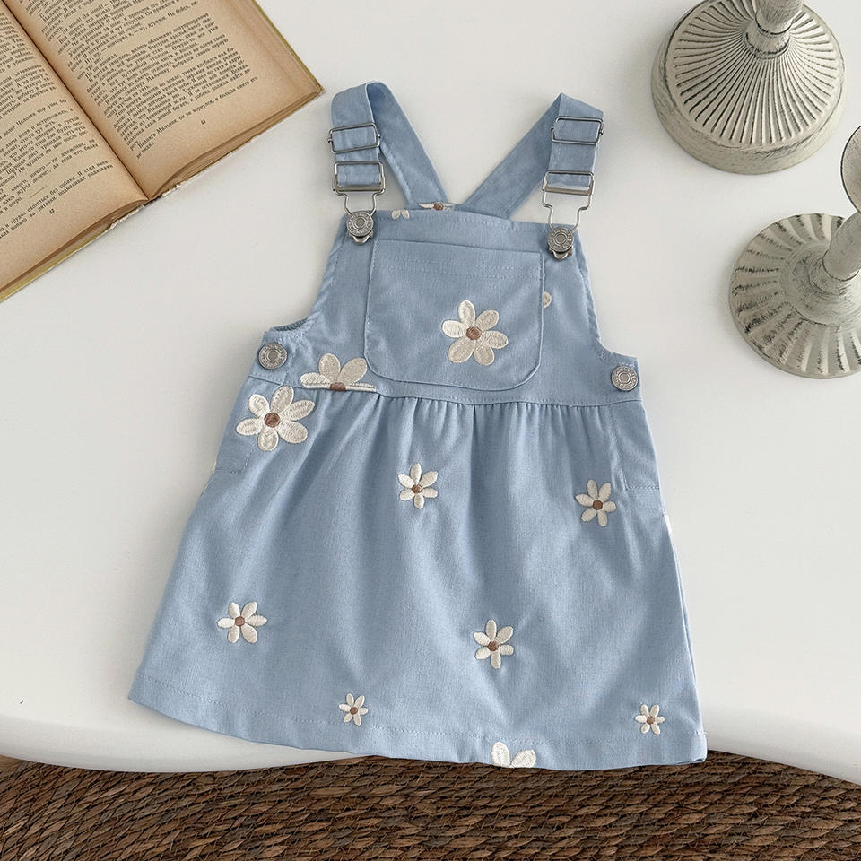 Vestito Primaverile per Neonata Abito a Bretelle per Bambine con Ricamo Floreale Abbigliamento per Bebè