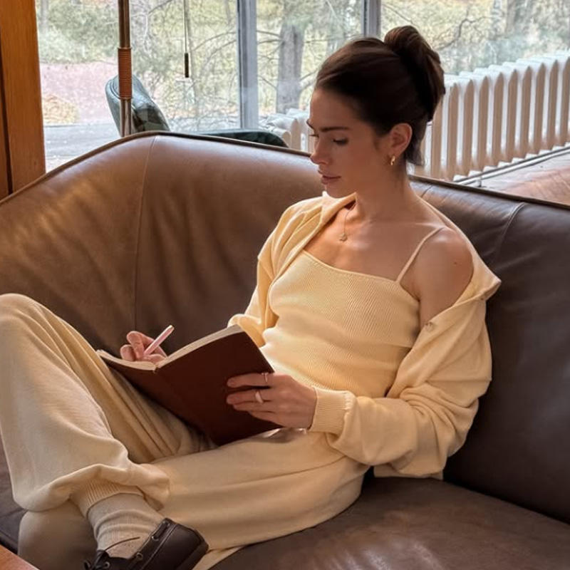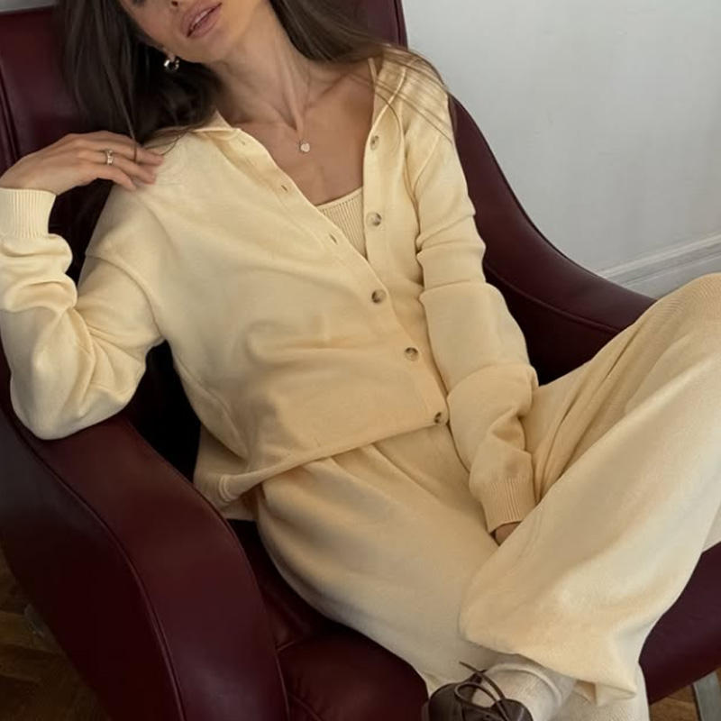 Completo Abito Coordinato da Donna in Maglia di Lana Beige con Spalle Scoperte e Maniche Lunghe, Stile Casual di Lusso con Dettagli in Pelliccia, Collezione Primavera