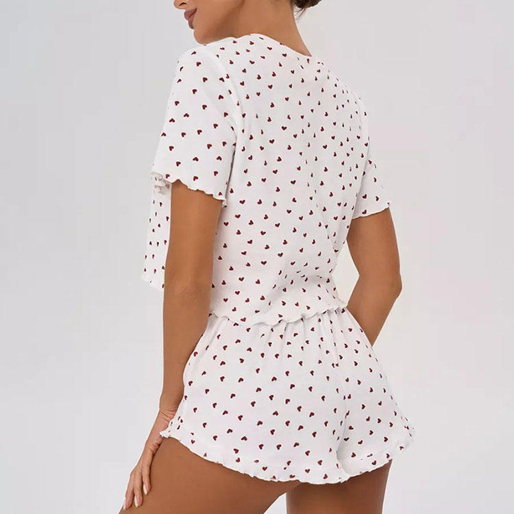 Spring Sexy Love Printed Short Pajamas Set Soft Breathable Home Wear for Women