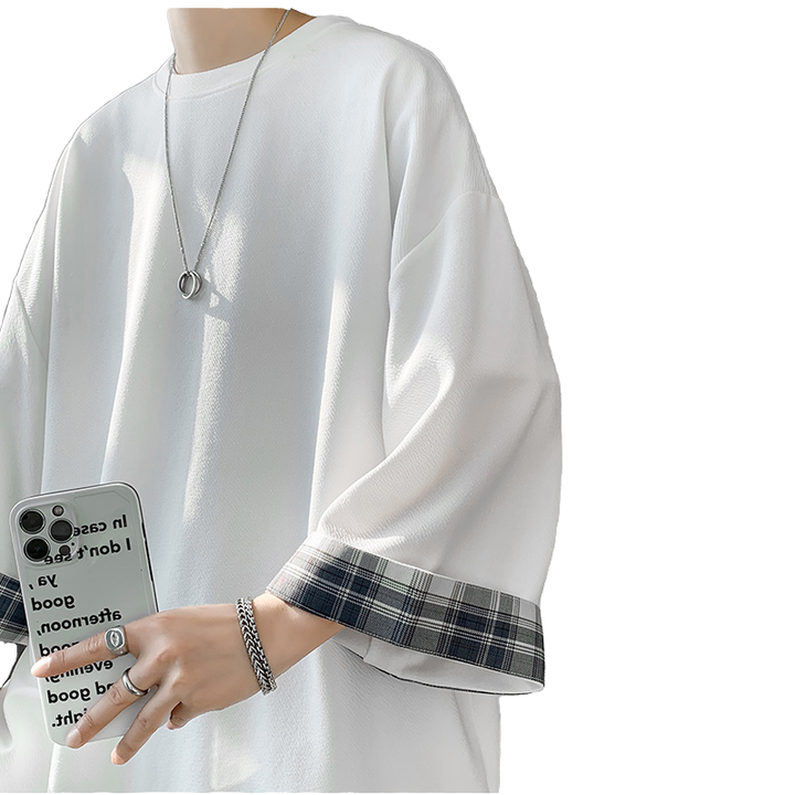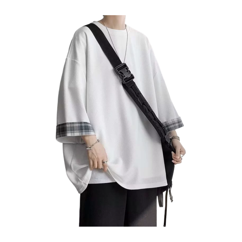 T-Shirt Oversize Primavera-Estate per Uomo e Donna 2XL, Stile Coreano, Ampia e Casual a Quadri, Maniche Corte, Bianca, Lunghezza Extra