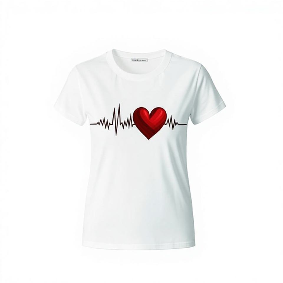 Spring Summer Women's Plus Size Casual T-Shirt 100% Cotton Jersey Red Heart Romantic Heartbeat Print Valentine's Day Confession