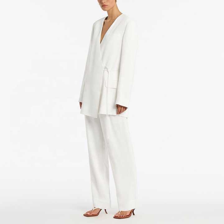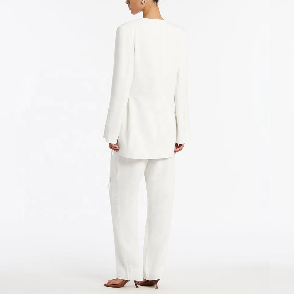 Completo Donna Primaverile 2 Pezzi: Pantaloni Larghi a Vita Elastica in Lino e Giacca Tinta Unita