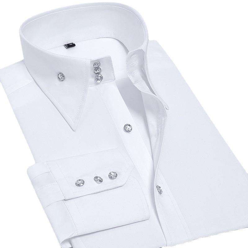 Camicia da Uomo a Maniche Lunghe con Bottoni in Cristallo, Nuova Collezione Primavera-Autunno, Elasticizzata, di Alta Qualità, Business Casual, Slim Fit, Alla Moda