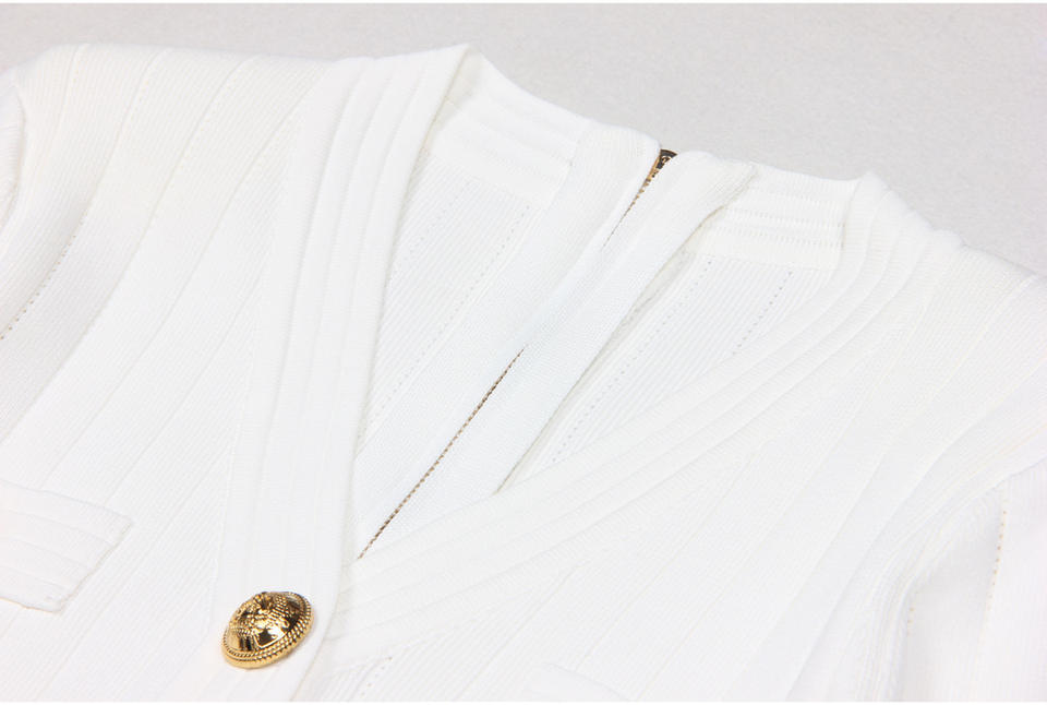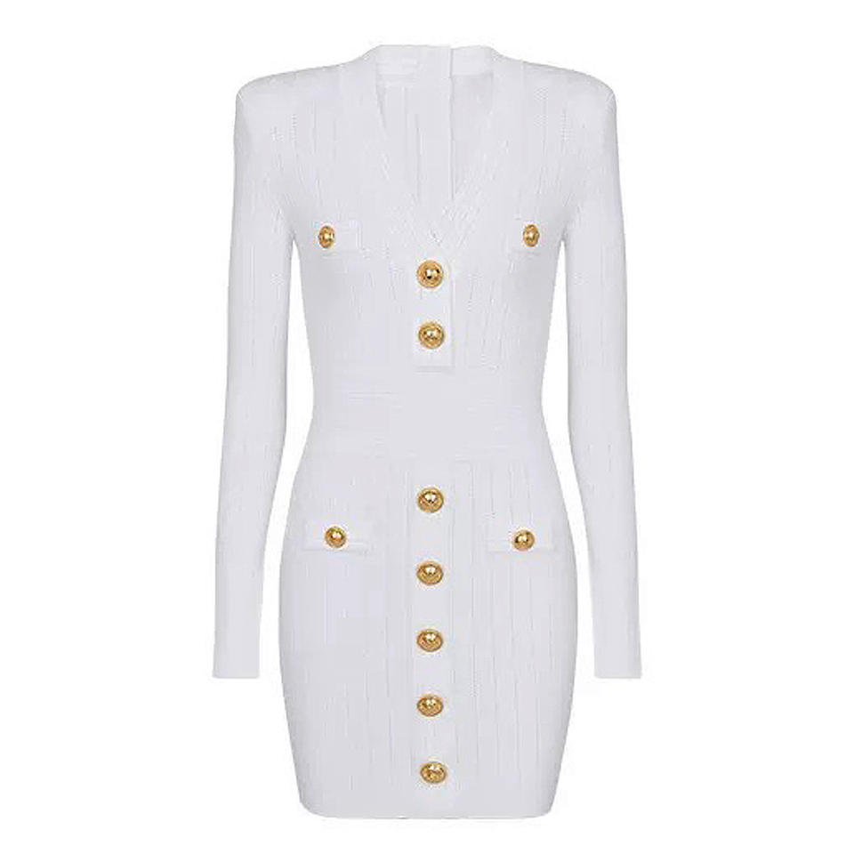 Primavera e autunno nuova striscia tinta unita con scollo a V in oro con bottone manica lunga dimagrante abito da donna Casual pendolare