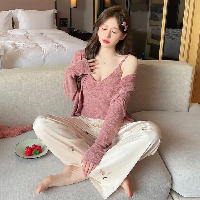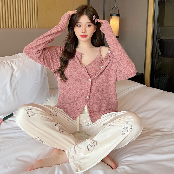 Pantaloni Panda da donna in pigiama primavera e autunno Set in tre pezzi con pantaloni con bretelle sul petto Set pigiama