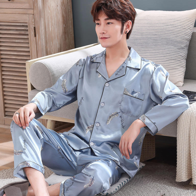 Pigiama da uomo primavera e autunno in seta a maniche lunghe