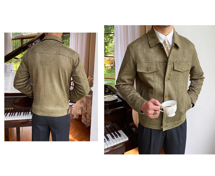 Primavera e autunno camoscio nuovo tinta unita Casual stile giapponese Casual retrò Versatile alla moda giacca da uomo con risvolto caldo